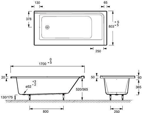 E6139L-00 FORMILIA Встраиваемая акриловая ванна 170 х 80 см. левосторонняя Белый