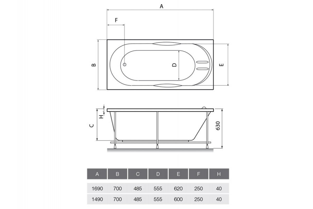 Комплектация: чаша ванны;