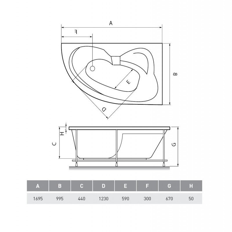 Ванна акриловая правосторонняя Relisan EcoPlus Эльба Гл000023039, 170х100