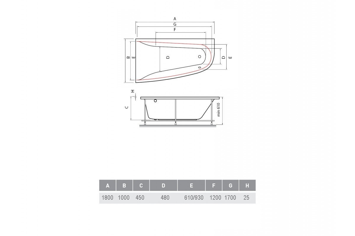 Ванна акриловая правосторонняя Vayer BOOMERANG Гл000010852, 180x100