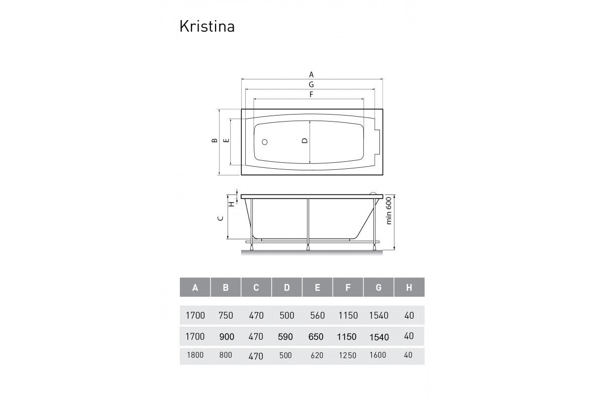 Ванна акриловая Relisan KRISTINA Гл000008873, 170x75