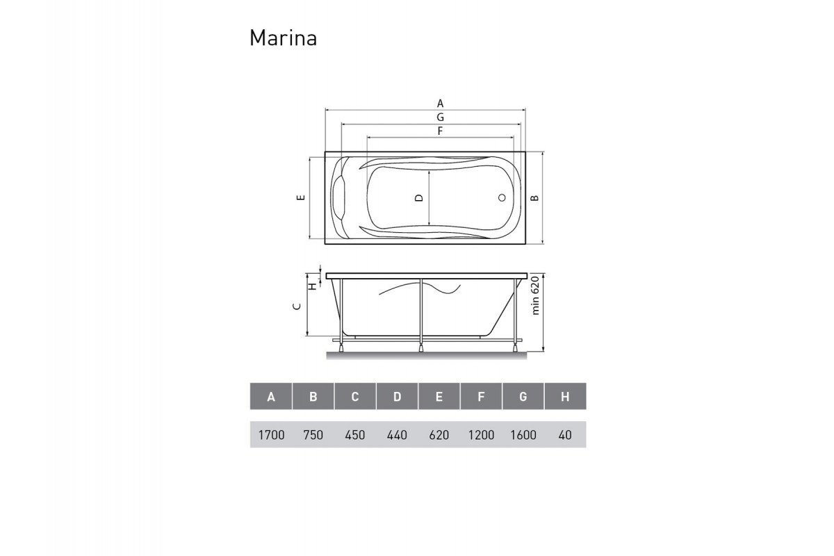 Ванна акриловая Relisan MARINA Гл000008874, 170x75