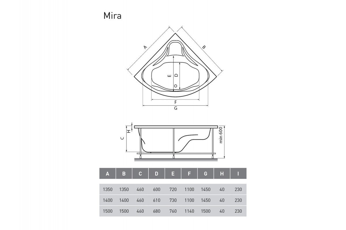 Ванна акриловая угловая Relisan MIRA Гл000000545, 135x135