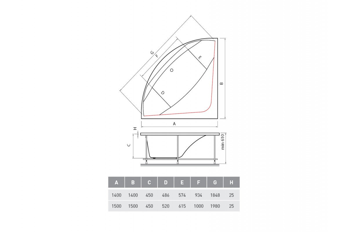 Ванна акриловая Vayer BOOMERANG Гл000010858, 140x140