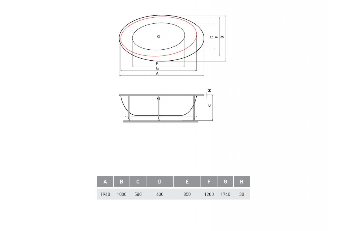 Ванна акриловая встраиваемая Vayer BOOMERANG Гл000010859, 194x100
