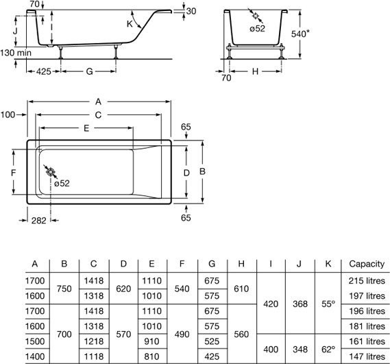 ZRU9302904 EASY акриловая ванна 150x70