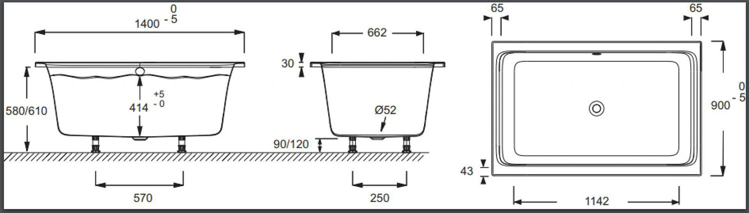 E6D123-00 Capsule ванна/душ 140X90, ножки в комплекте