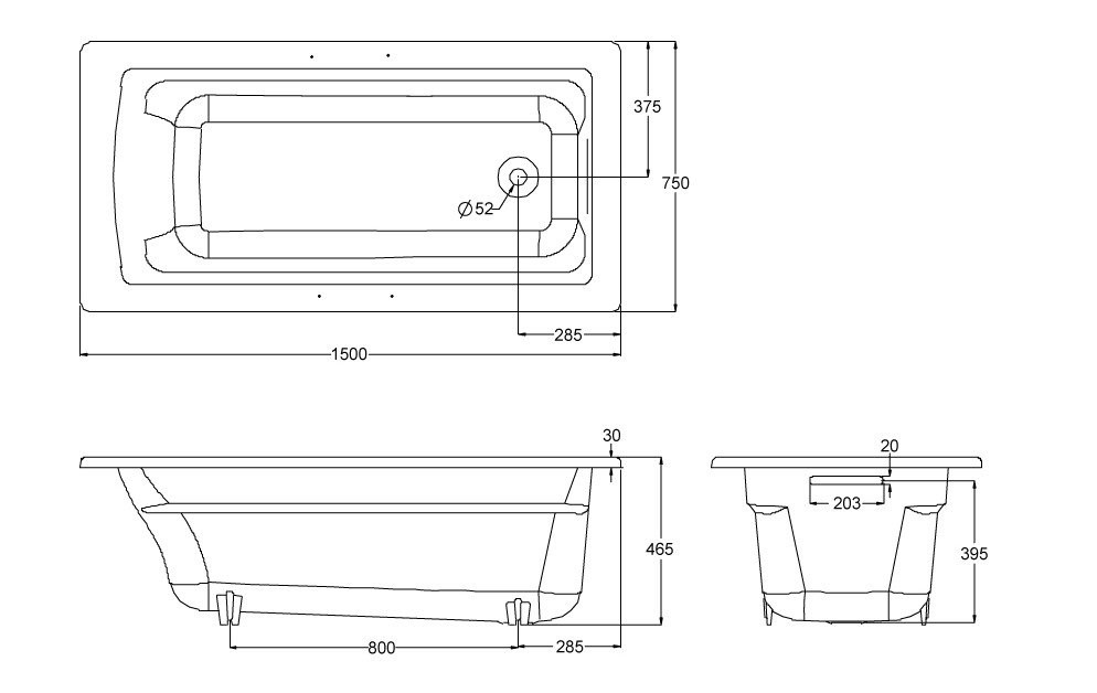 E6D906-0 ARCHER ванна чугунная 150*75 без отверстий для ручек, С АНТИСКОЛЬЗЯЩИМ ПОКРЫТИЕМ