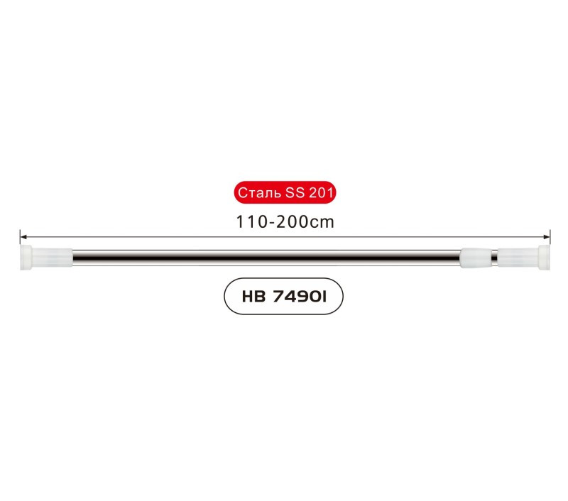 Карниз телескопический бренда Haiba. Имеет регулировку по длине от 110 до 200 см. Изготовлен из стали стандарта SS201, что говорит о надежности изделия.
