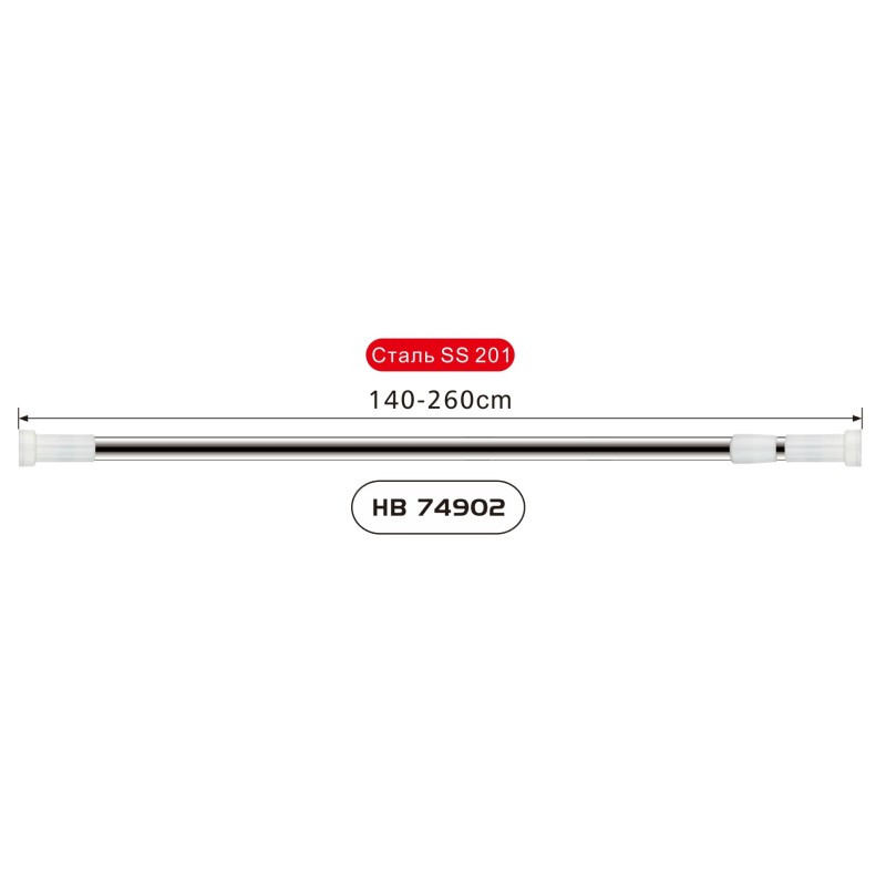Карниз телескопический бренда Haiba. Имеет регулировку по длине от 110 до 260 см. Изготовлен из стали стандарта SS201, что говорит о надежности изделия.