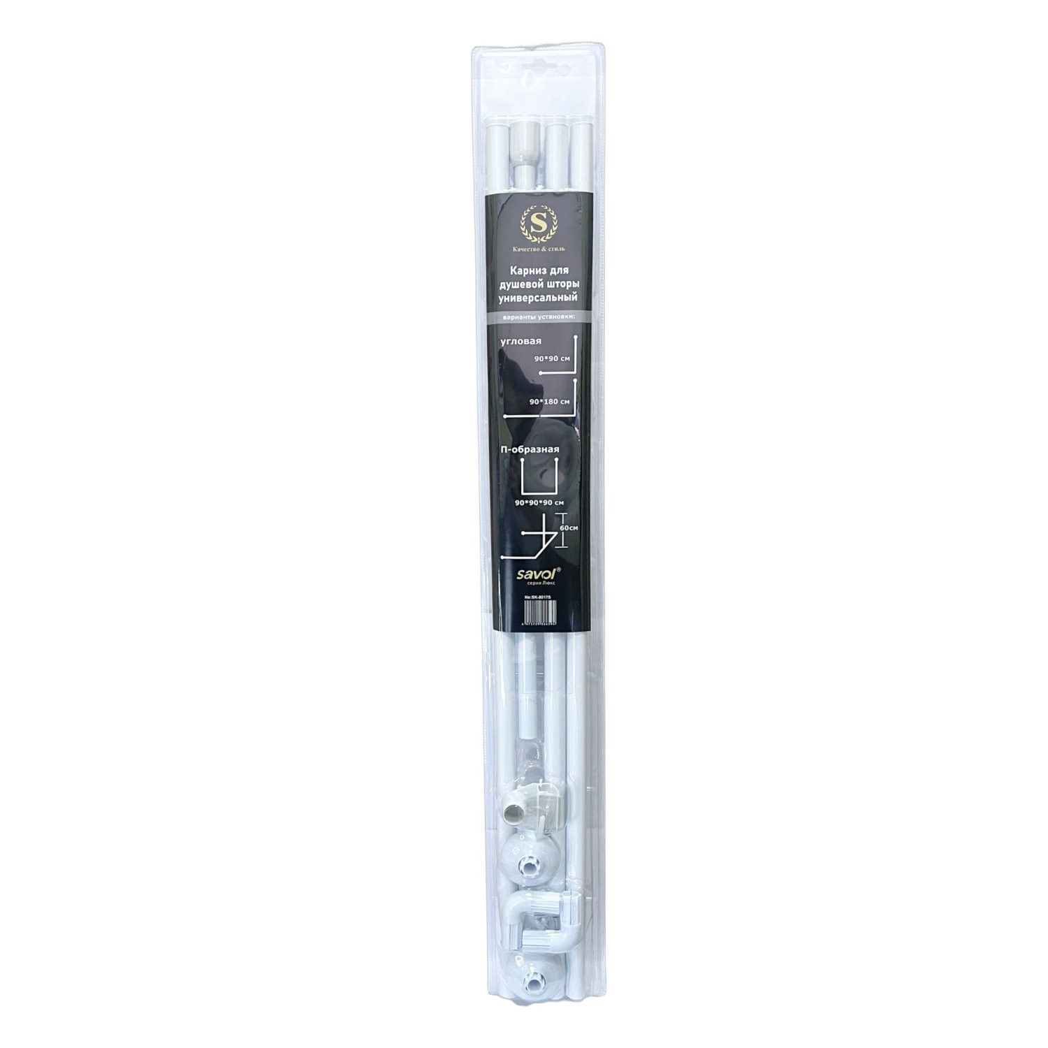 Карниз угловой для ванной Savol SK-8017S, белый. Длина 90 см. Нержавеющая сталь.