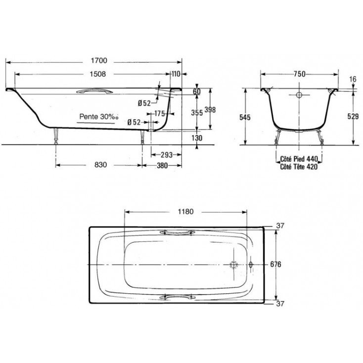 RUB DIAPASON E2937-00 ванна 170х75 без отверстий для ручек