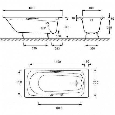 RUB MELANIE E2935-00 ванна 160х70 с отверстиями для ручек