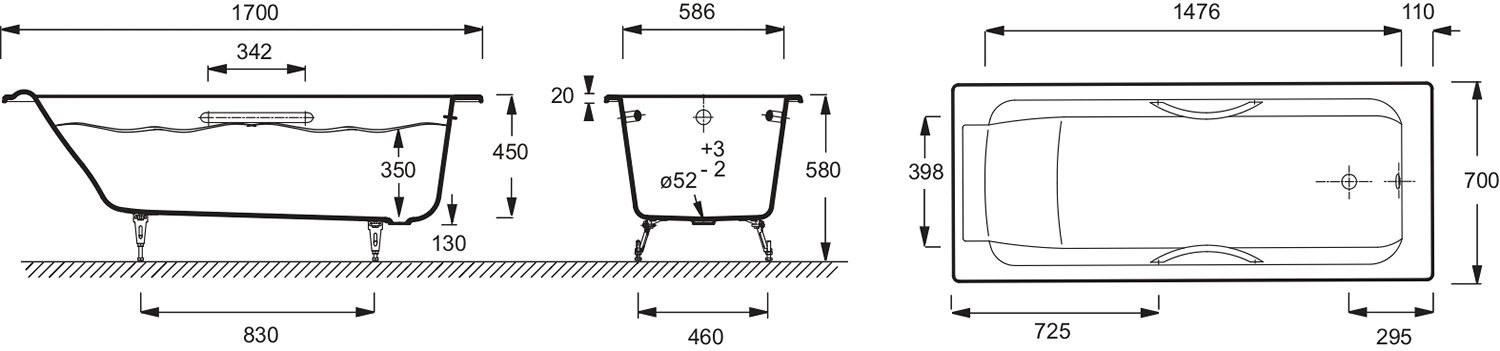 RUB PARALLEL E2948-00 ванна 170х70 с отверстиями для ручек