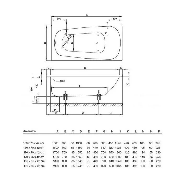 Ванна 1700х700х420 мм., с системой антишум, BetteGlasur® Plus, цвет белый