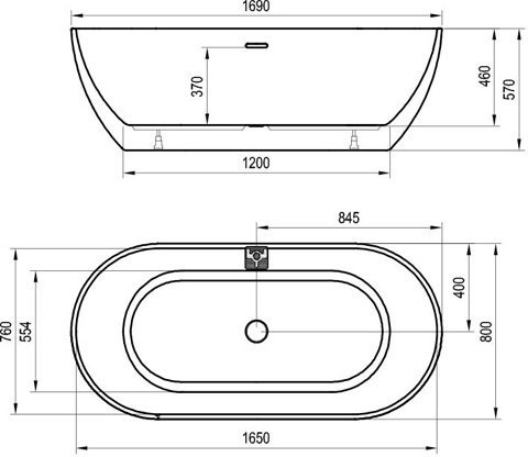 Ванна FREEDOM 1690х800 белая отдельностоящая (включает слив)