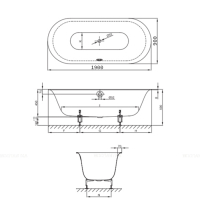 Ванна встраиваемая овальная с шумоизоляцией 190x90x45 см, цвет черное дерево(матовый) (для удлиненного слива-перелива)