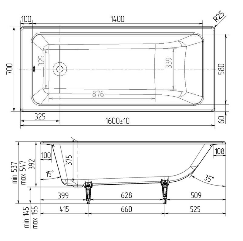 Wotte Line 1600х700х392 ванна чугунная (БП-э00д1466)