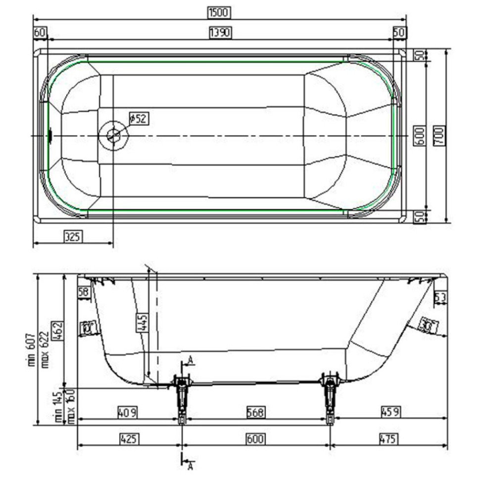 Wotte Start 1500х700х445 ванна чугунная (БП-э0001099)