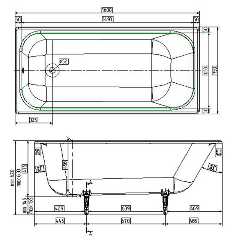 Wotte Start 1600х750х458 ванна чугунная (БП-э0001106)